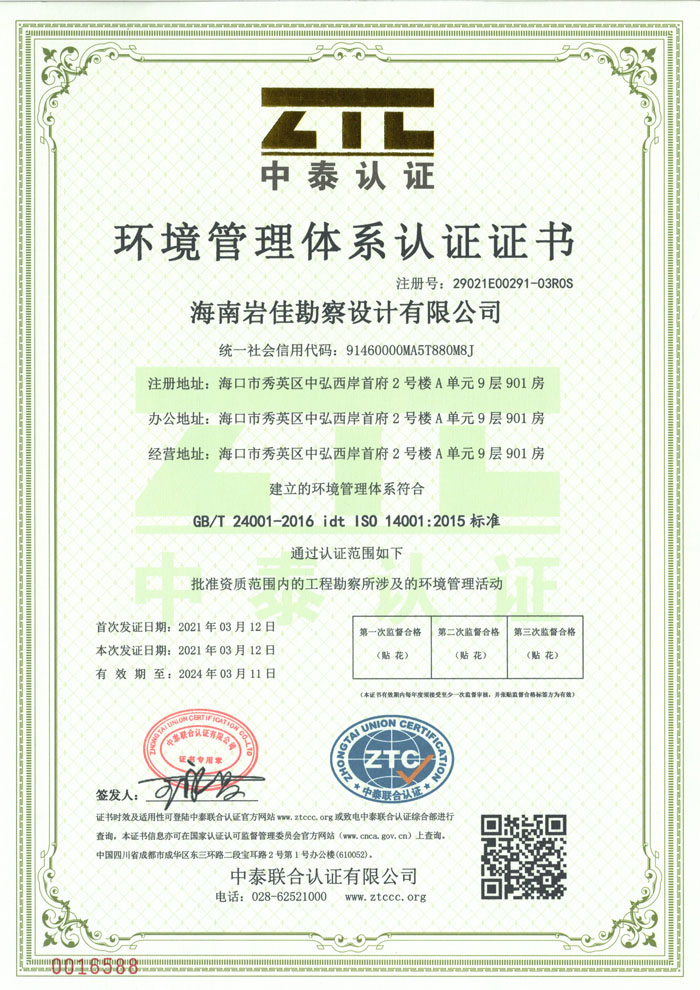 環(huán)境管理體系認(rèn)證證書